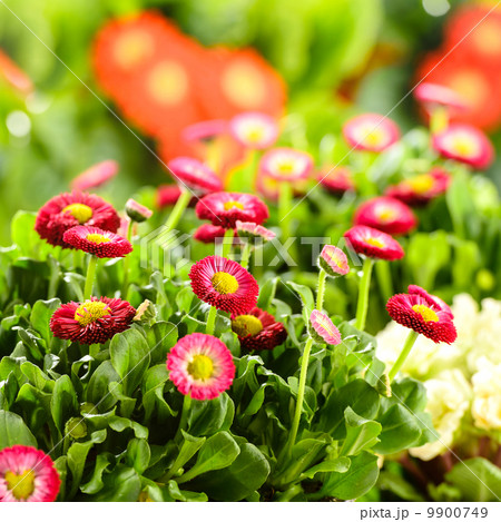 Bellis red potted spring flowers