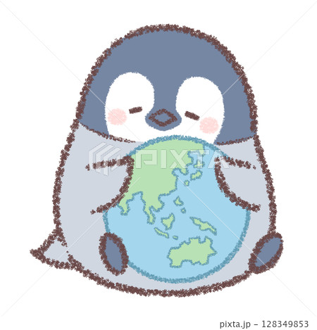 地球を抱くペンギンヒナ