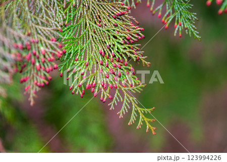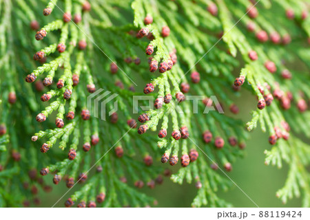 花粉飛散前のヒノキ【花粉症イメージ素材】