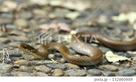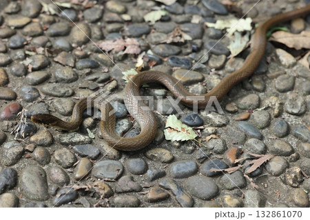 生き物 爬虫類 ヒバカリ、近くに流れのある雑木林で見つけました。カエルやミミズなどを食べるそうです