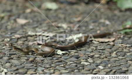 車道を堂々と歩いていく日本のヘビ「ヒバカリ」
