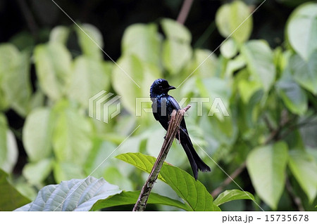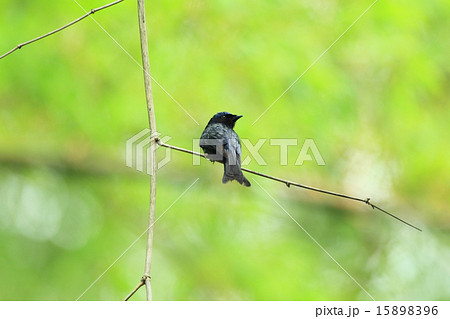 タイなど、東南アジアの熱帯雨林で見られる漆黒の羽が特徴的な美しい小鳥ヒメオウチュウ