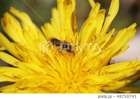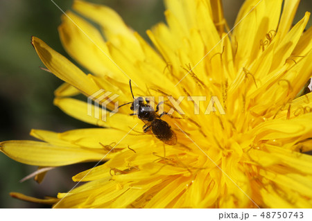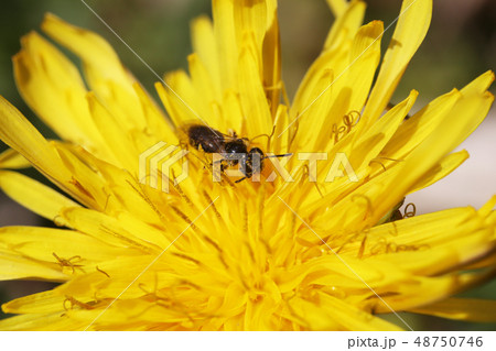 タンポポの花の上のヤヨイヒメハナバチ