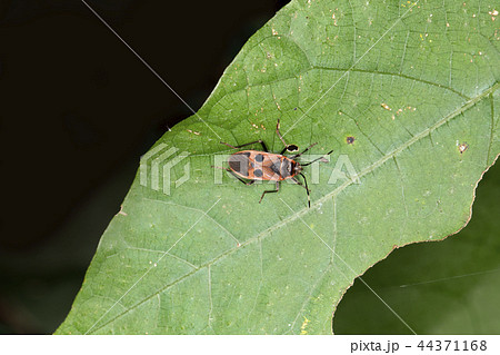葉の上にいるヒメホシカメムシ