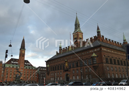 デンマーク、コペンハーゲン、冬のどんより曇った市庁舎前