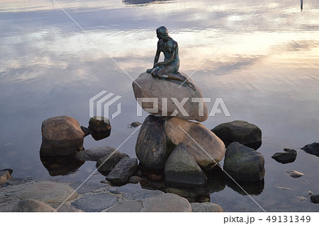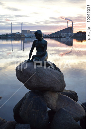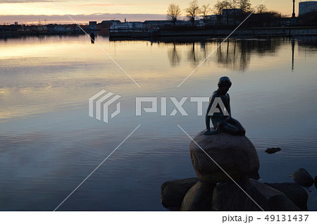 デンマーク、コペンハーゲン、夜明けと人魚像