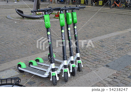 デンマーク、コペンハーゲンに駐車中の電動キックボード