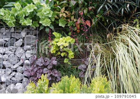 蛇籠バスケットのカビオン外構とヒュ―ケレラ属のガーデン4