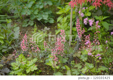 春の日陰の庭 木陰のヒューケレラ ピンクフィズ