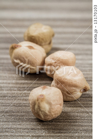A picture of dry roasted chickpeas with selective focus