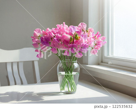 スイートピーのカラフル花束(横 全体 中央 右向き)