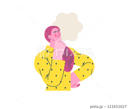 Thinking people, modern flat vector concept illustration- man standing thoughtfully, looking upwards, bubble near his head Metaphor for reflection, analysis, introspection, contemplation, deep thought
