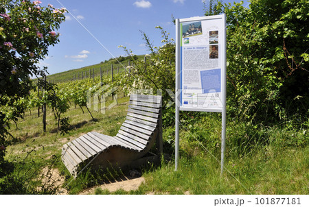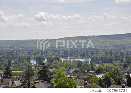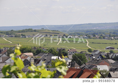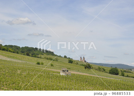葡萄畑(ぶどう畑)が広がるドイツ、アイビンゲンの風景(景色)遠くに見えるのは聖ヒルデガルト修道院