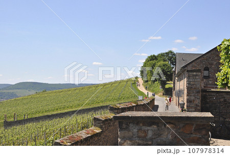 ドイツ、リューデスハイムから住宅地を抜け丘の上にある聖ヒルデガルト修道院の敷地内の風景