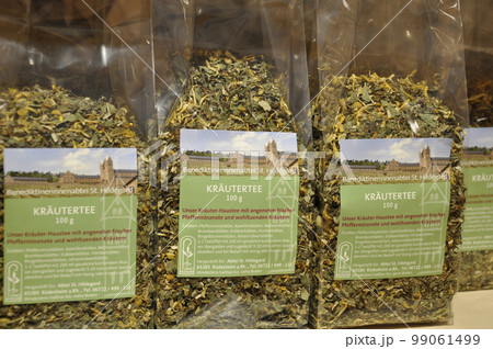 ドイツ、リューデスハイムの近くにある聖ヒルデガルト修道院の売店に売られてあるハーブティー