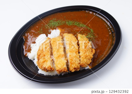 大きい豚カツが真ん中に一枚乗っているカツカレーを白背景で撮影