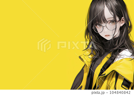キーカラーがイエローの女性のアニメイラスト(Generative AI)