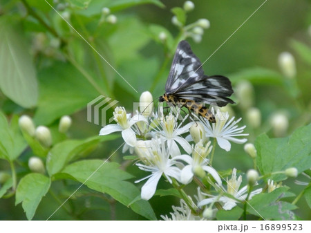 花に蝶 - ボタンヅルにヒロオビトンボエダシャク
