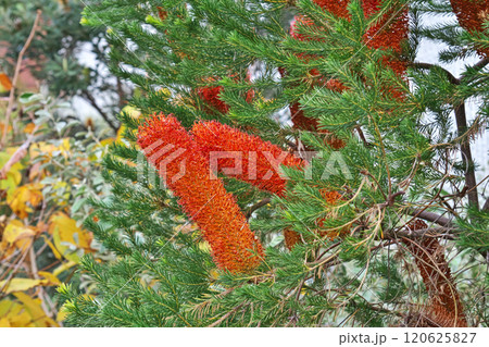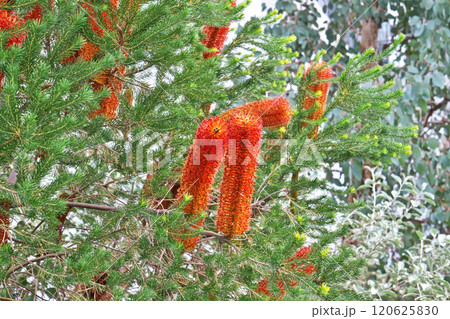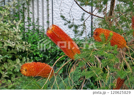 オレンジ色のバンクシアエリキフォリアの花(秋、十一月)