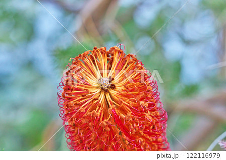 橙色のバンクシアエリキフォリアの花(冬、一月)