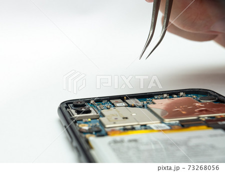 スマートフォン修理のイメージ 白背景・広いコピースペース