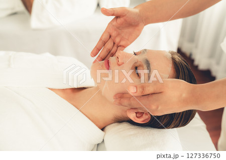 Woman customer indulges in rejuvenating with facial skincare mask. Quiescent