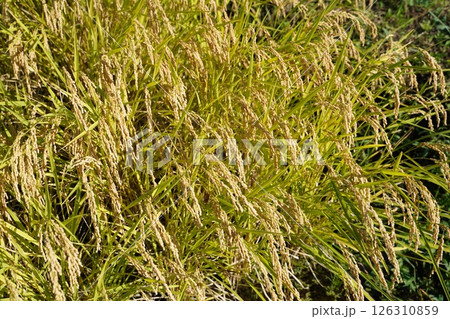 黄金色に輝く夕日の中のススキ(パンパスグラス)のクローズアップ