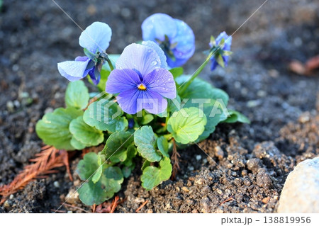 パンジー ビオラ スミレ 青紫色の花 明るい背景