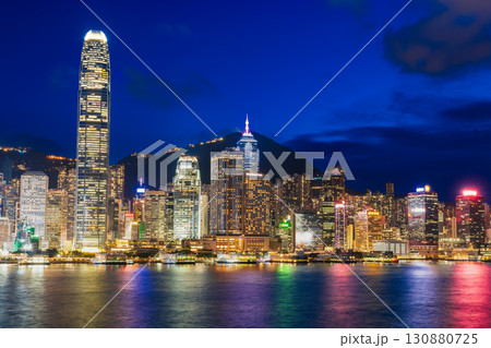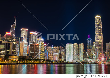 香港 夜のビクトリアハーバー 金融センターの中環エリア
