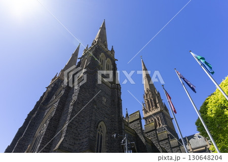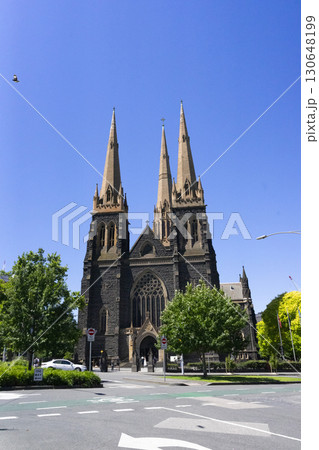 Melbourne, Australia - December 29,2023 : Historical St. Patrick's Cathedral with blue sky in Melbourne, Australia on December 29,2023.