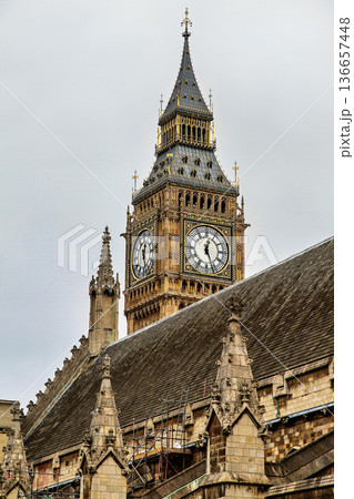 Big Ben with Houses of Parliament and Westminster bridge in London, England, United Kingdom