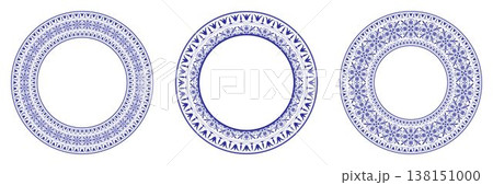 Collection of decorative blue round frames arabesques. Circle frame. Egyptian, Assyrian, Greek motif circular frame. Pattern frame for textiles, engraving, embroidery, ceramic, plate, embroidery EPS