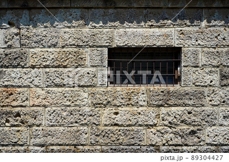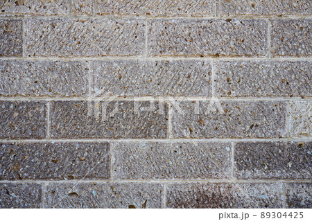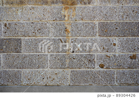 特徴的な表面仕上げが施された石のブロックを積み上げた壁