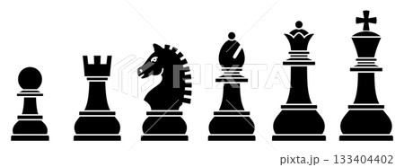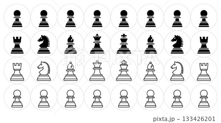 様々な形のチェスの駒のアイコンのベクターイラストのセット