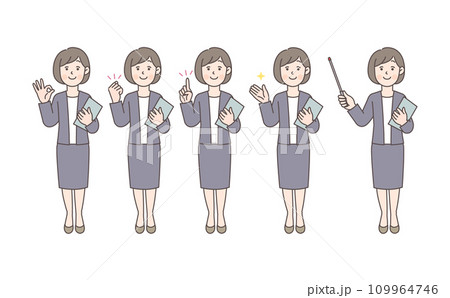 ベージュのスカートスーツを着た女性のポーズセット