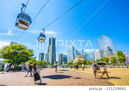 日本の横浜都市景観 YOKOHAMA AIR CABIN運河パーク駅から横浜ランドマークタワーなど…