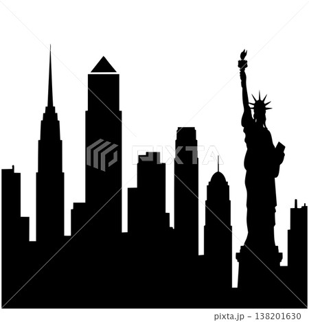 New york city skyline silhouette with statue of liberty against clear white sky background