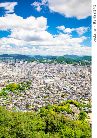 広島市比治山公園の東方面市街地風景です。広島駅前から南方面の比治山町、段原町展望。精密画像