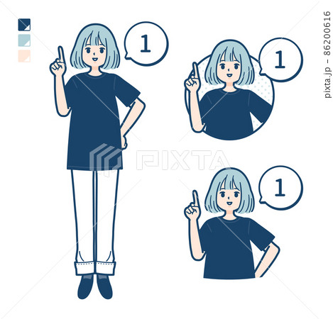 ビッグサイズTシャツを着た女性が1とカウントしているイラスト