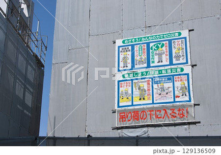 ビル新築工事/横幕「ゼロ災害」