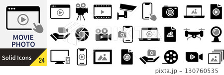 ベクターの写真と動画のシルエットアイコンセット