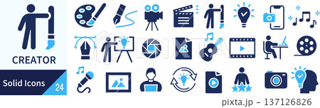クリエイターに関する線画アイコンセット