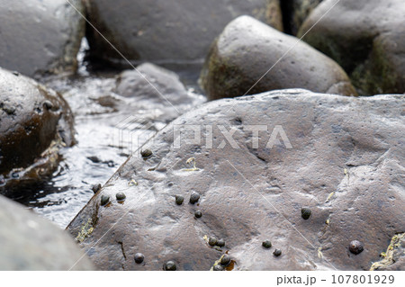 磯の岩に群生する小さな巻貝