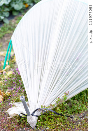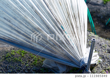 ポリエチレンの覆いがしてある畑