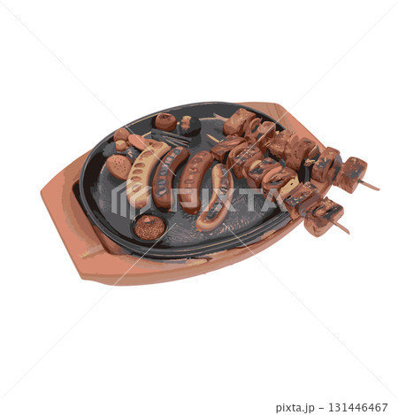 ビアホールや居酒屋のソーセージと串焼きのバーベキューの鉄板焼き