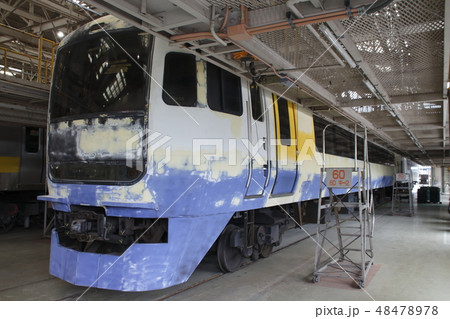 大宮総合車両センターにて検査を受ける255系電車