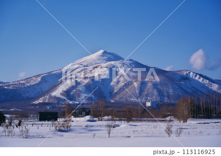冬の有島記念公園からニセコアンヌプリを臨む