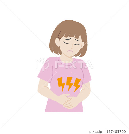 シンプルなタッチの摂食障害の若い女性のイラスト4点セット