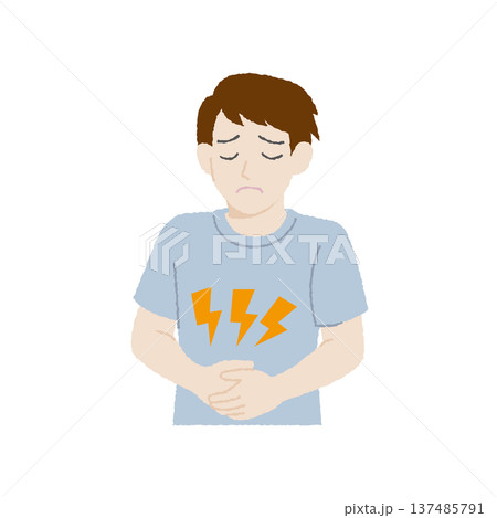 シンプルなタッチの摂食障害の若い男性のイラスト4点セット