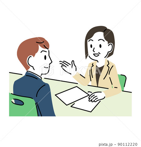 シンプルなタッチの若い女性の表情セット(スーツ)